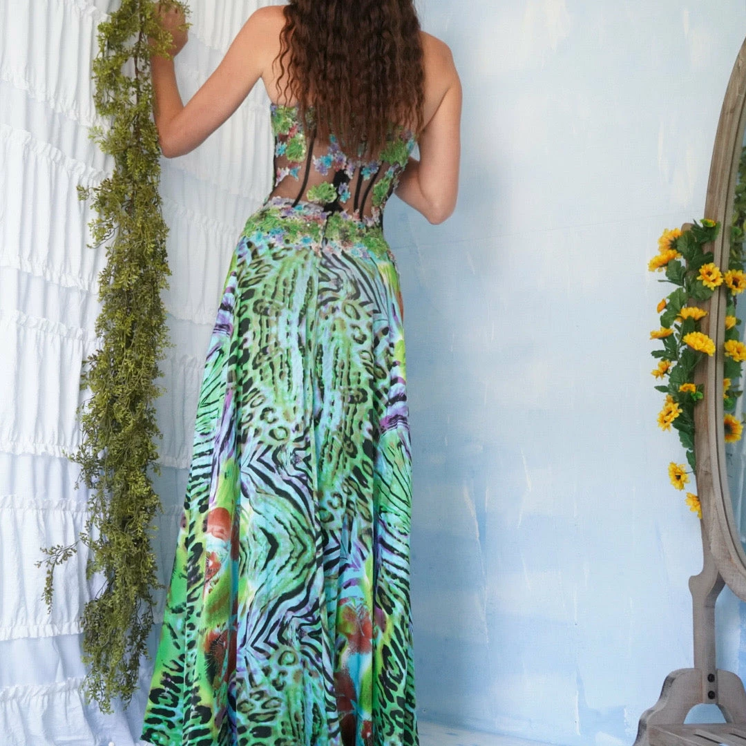 Masha & Jlynn Vintage Rare 90’s Beaded Floral Animal Print Corset Gown. Dresses